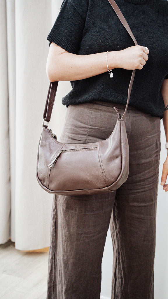 • Ada bag - Chocolate Pebble-Baleka Leather-Effortlessly modern and beautifully practical, the Ada bag is designed for those who appreciate relaxed style with thoughtful functionality. Its soft, contemporary silhouette offers an easy elegance that transitions seamlessly from day to night. The spacious interior is fully lined and includes both an internal zip pocket and slip pocket to keep your essentials organised. A back zip pocket provides quick access to items on the go, while the adjustable strap allows y