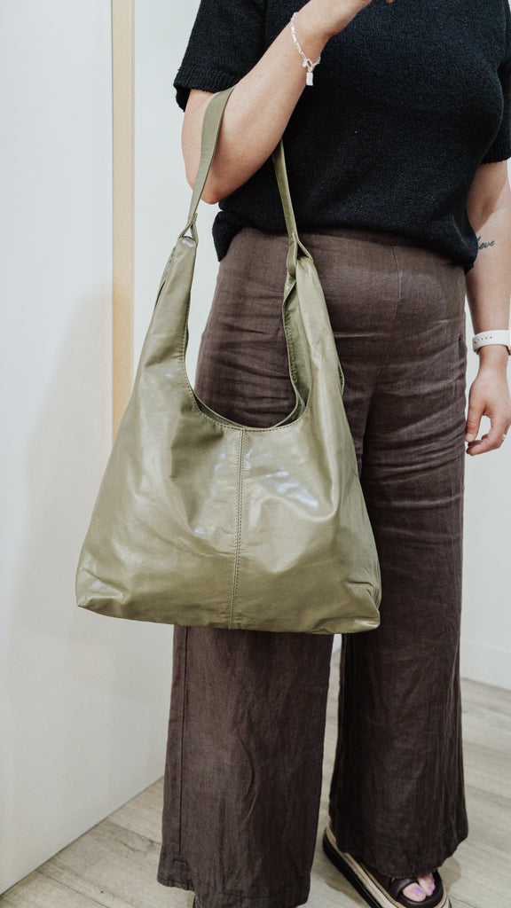 • Eden shoulder bag - Olive Green-Baleka Leather-Elevate your everyday with the Eden shoulder bag, featuring a relaxed, slouchy silhouette with effortless style. Designed for practicality, it offers a secure press stud closure, fully lined interior, complete with an internal zip and pocket to keep your essentials organised. Comfortable and chic, the Eden shoulder bag is made to move with you - effortlessly adapting your day with understated style. An elegant bag designed in the beautiful town of Port Fairy Se