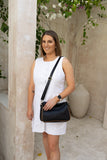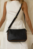 • Esme bag - Black/tan trim-Baleka Leather-With its seamless silhouette and elevated simplicity, Esme is designed to keep up with your pace - from morning meetings to evening plans. A contrast trim adds subtle detail, while the adjustable strap allows for easy wear - over the shoulder or crossbody. Thoughtfully finished with a fully lined interior, internal zip and slip pocket, keeping your essentials organised. The perfect, modern style for everyday use. A modern style designed in the beautiful town of Port