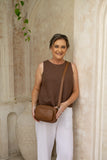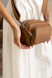 • Remi crossbody bag - Camel brown Pebble-Baleka Leather-Chic, compact & endlessly versatile. The Remi is our most versatile and practical bag - thoughtfully designed to keep up with your day. Featuring a front compartment for your must-have essentials, a sleek back pocket with secure press stud closure and a spacious main compartment complete with an internal zip pocket and slip pocket for a neat interior layout. Fully lined and finished with an adjustable strap that can be worn on the shoulder or crossbody,