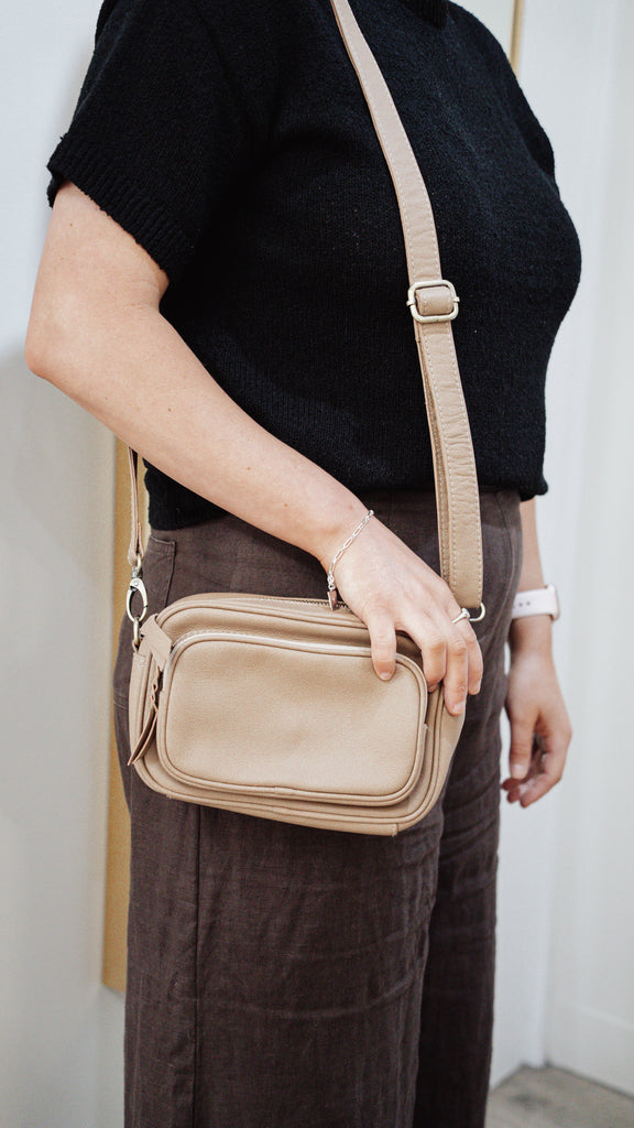 • Remi crossbody bag - Cream stone Pebble-Baleka Leather-Chic, compact & endlessly versatile. The Remi is our most versatile and practical bag - thoughtfully designed to keep up with your day. Featuring a front compartment for your must-have essentials, a sleek back pocket with secure press stud closure and a spacious main compartment complete with an internal zip pocket and slip pocket for a neat interior layout. Fully lined and finished with an adjustable strap that can be worn on the shoulder or crossbody,