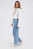 A new high-rise jean featuring front patch pockets, a fitted waist and slightly wide leg.