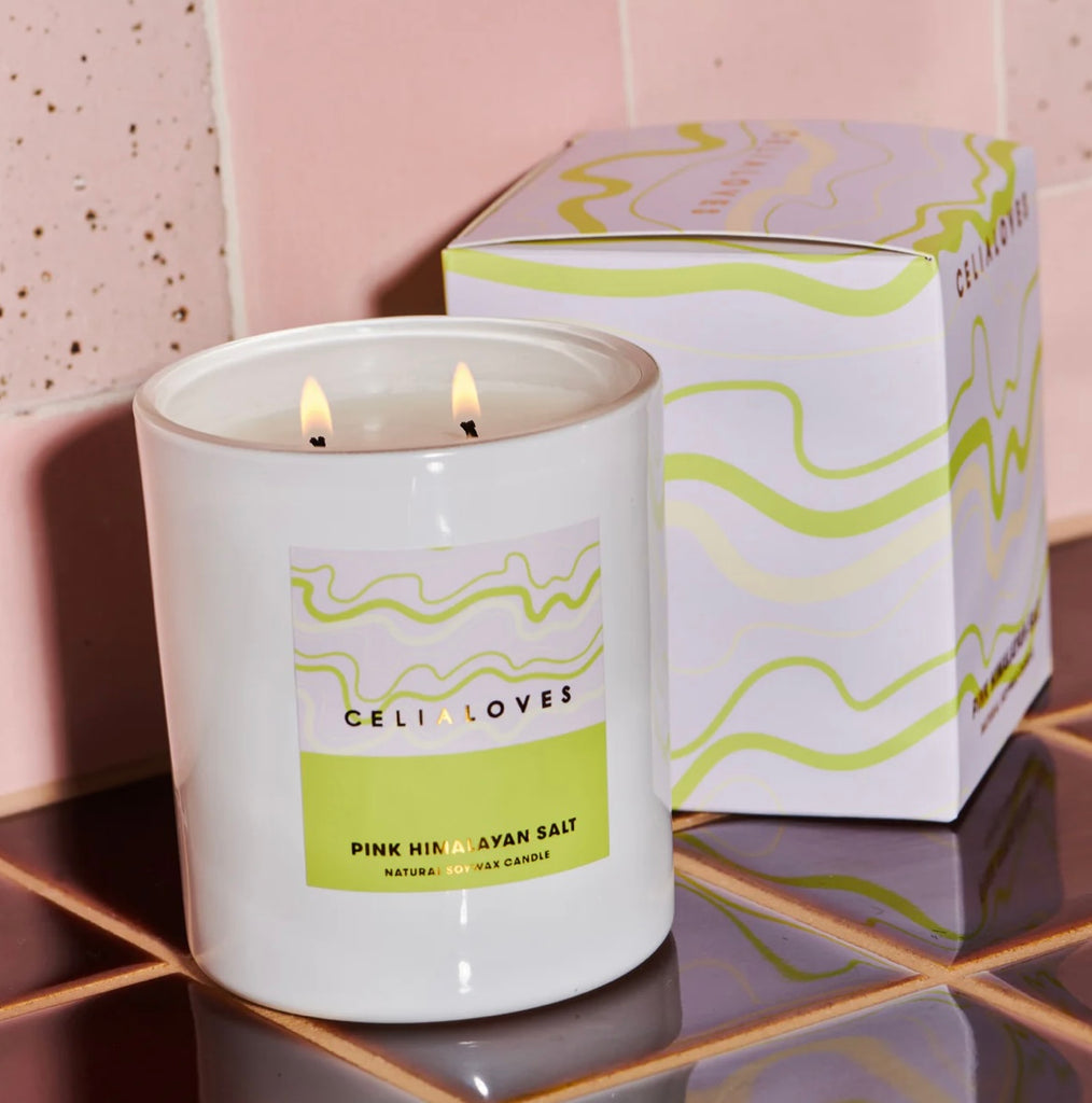 • Pink Himalayan Salt Candle-Celia Loves-Pink Himalayan Salt will soothe your soul and help you *seriously* relax while feeling like a sophisticated queen. This scent portfolio evokes simple elegance and invites all those rejuvenating vibes into your space. It also low-key smalls like a boujee hotel lobby. Top notes orange zest, lemon peel Heart notes himalayan salt, jasmine Base notes pine, cedarwood Handcrafted on the Surf Coast of Victoria using soy wax, the Celia Loves La Fiesta Collection is all about br