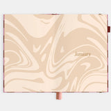 208 pages. One week per spread and monthly spreads at the beginning of each section. Gold foil stamped linen cover with gold foil edging. Three grosgrain ribbons in gold, blush and cream.
