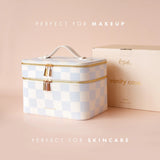 • Powder Check Vanity Case-Fox & Fallow-Say hello to your new bestie - the Fox & Fallow 'Classic' Vanity Case! She’ll get you organised and keep you organised, whipping your skincare and makeup routine into shape. Not just for travel, it's the perfect bag for everyday! • Vanity Case: 24 x 16.5 x 17.5cm.• Box: 26 x 20 x 20cm.• Pebble vegan leather with a tan lining.• Dual layer with elastic loops.• Internal zip pocket.• Gold hardware.• Two handles and two zippers for easy access.• Bonus removable clear bag.• M