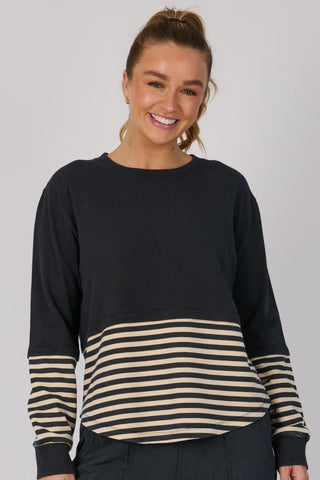 Scoop Hem Long Sleeve Top - Stone Blue Stripe