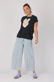 The Half Collar Tee in Black Falling Hearts is crafted from a soft cotton blend for easy everyday wear. Featuring a relaxed fit with a round neckline, short sleeves, and a half-collar detail for a modern touch, this tee combines casual comfort with subtle style.