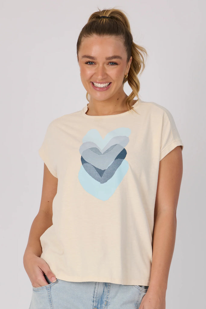 Half Collar Tee - Ecru Falling Hearts