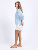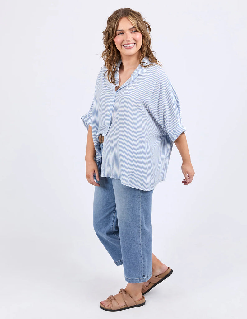 The luna shirt features button through, yarn dye stripe, and loose fit. Style it your way for an effortless look that works for any day of the week.