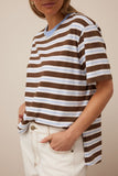 Stevie Slouchy Tee - cocoa sky blue stripe