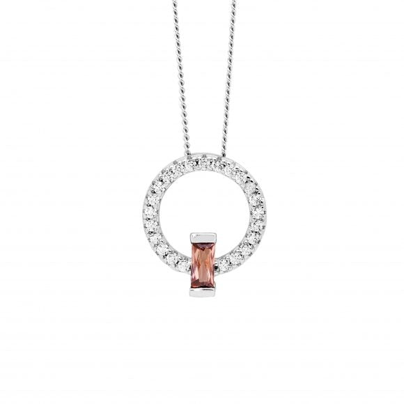 13mm WH CZ Open circle pendant with rhodolite baguette CZ