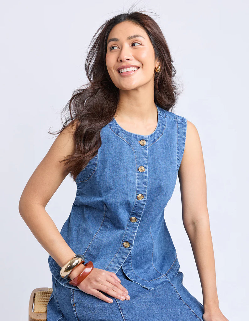 An easy layering piece designed with everyday wear in mind. The Abbott Vest combines comfort with a clean, modern silhouette, perfect for styling back with your favourite skirt or pants.
