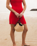 The Taya Raffia Black Mini Tote Bag is a fresh take on summer styling - petite in size, bold in texture, and made for days under the sun. Crafted from natural raffia and contrasted with buttery soft vegan leather, this top handle bag features a sleek boat-shaped silhouette that brings structure to a relaxed coastal mood. Designed as a versatile convertible tote, Taya Raffia Black offers multiple ways to wear her: a short vegan leather top handle for a polished look, or an adjustable, detachable crossbody strap for hands-free ease. The balance of the woven body and smooth trim captures the essence of sunlit escapes and beachside strolls, while her compact size makes her the perfect companion for café catch-ups, market mornings, and spritz-soaked afternoons.